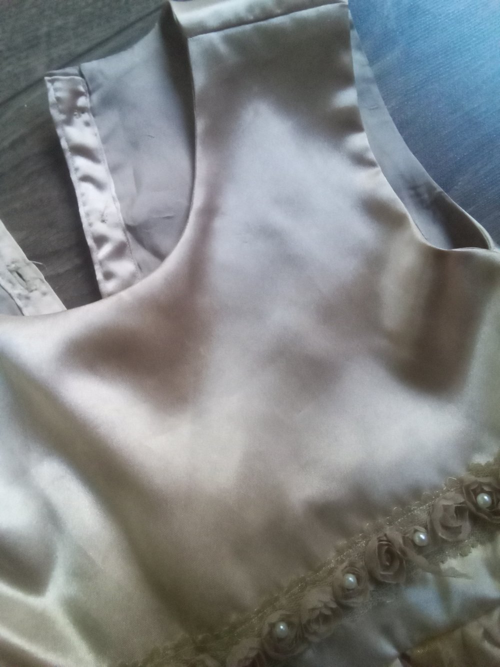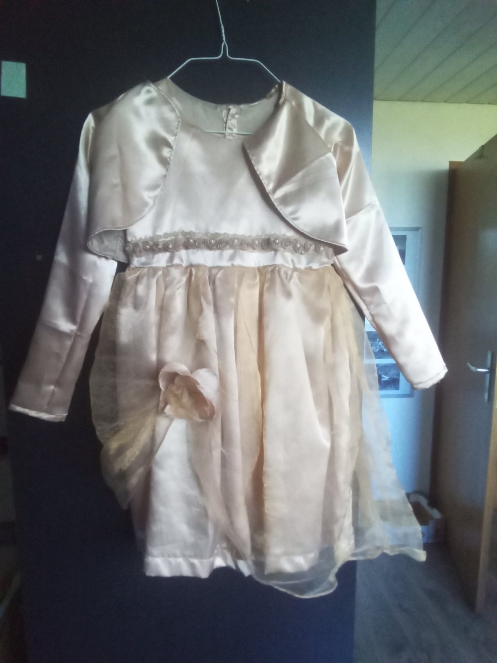 Tolles #handmade #Kleid und passender #Bolero in Gr 104. Genäht aus champagnerfarbenen #Brautsatin. Bei Bedarf messe ich gerne aus.