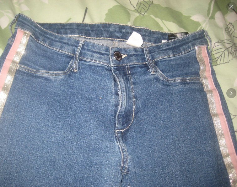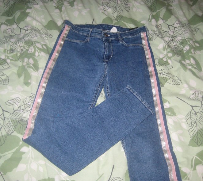 Denim&Denim mittelblaue Mädchen Jeans mit Rosa Glitzerstreifen, Gr. 170