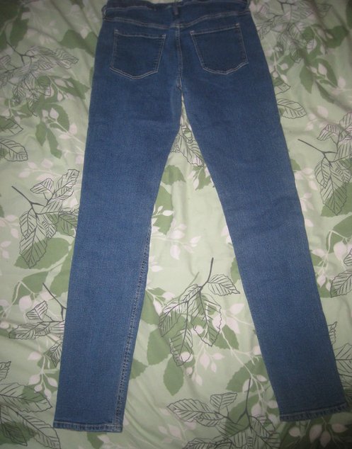 Neuwertige Mädchenjeans in Mittelblau mit zwei taschen vorn und zwei Gesäßtaschen, Glitzerstreifen an beiden Seiten der Beine, Rosa, Skinny, enges Beim, Stretchanteil für gute Passform, Länge: 93 cm