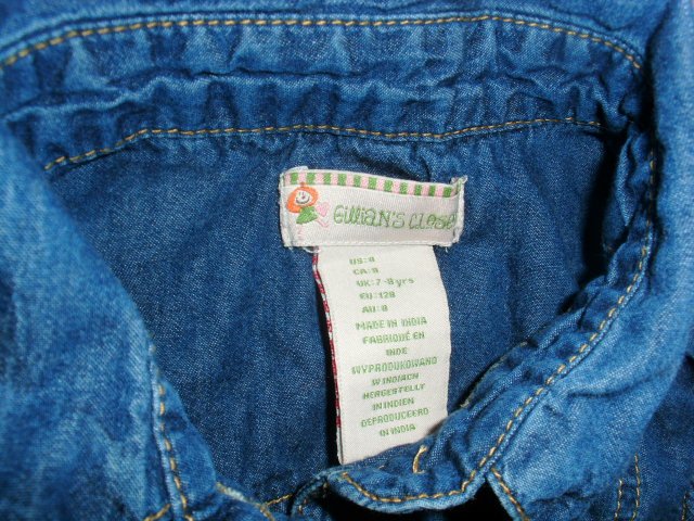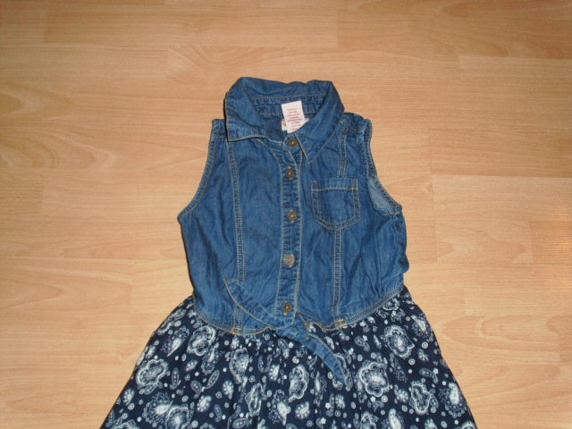 Biete hier ein ärmelloses Kleid von Gillians Closet in Größe 128 an. Es besteht aus 100% Baumwolle. Das Oberteil besteht aus einem dünnen Jeansstoff, vorn mit kurzer Knopfleiste und kleiner Brusttasche. Außerdem hat das Oberteil einen Hemdkragen und in der Taille ein kleines Bindebändchen. Das blaue Rockteil ist mit vielen weißen Motiven versehen und fällt schön locker und luftig. Das Kleid wurde nur sehr selten getragen und ist sehr gut erhalten.