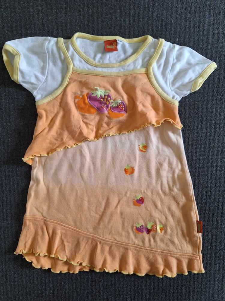 orangefarbenes Sommerkleid mit verspieltem Schnitt und Pailetten Gr. 86/92