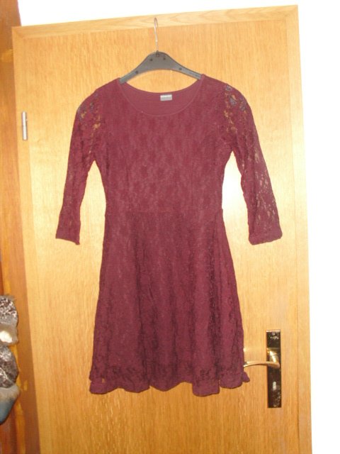 Biete hier ein Spitzenkleid von Kidsworld in Größe 152/158 an. Es ist bordeaux und ist aus Spitze. Die Ärmel sind transparent, das Kleid ist mit einem bordeaux farbeigen blickdichtem Baumwollstoff versehen. Seitlich mit Reißverschluss. Das Kleid wurde nur einmal für ein paar Stunden bei einer Festlichkeit getragen und ist somit noch sehr gut erhalten.