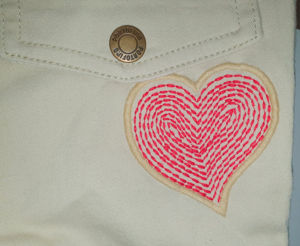 Hose von meiner jüngsten Tochter. Kurz. Mit ganz vielen, lieben Details. Weicher Jeans Stoff und Stretch. Oktoberfest Style