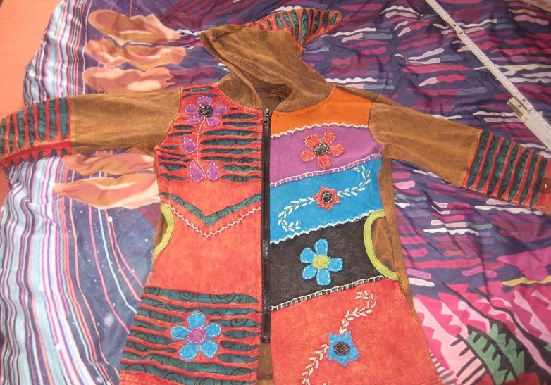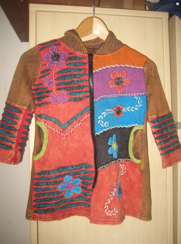 Elfen Strickjacke, Bunt, Zipfel Kapuze, aufwändige Handarbeit