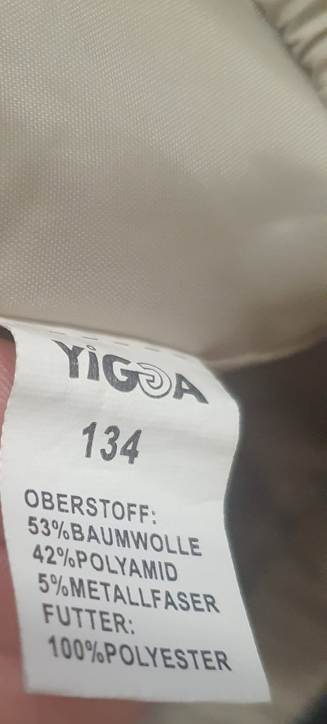 Leichte Jacke / Mantel von meiner jüngsten Tochter. Kapuze, mit Reißverschluss. 53% Baumwolle, 42% Polyamid und 5% Metallfaser.