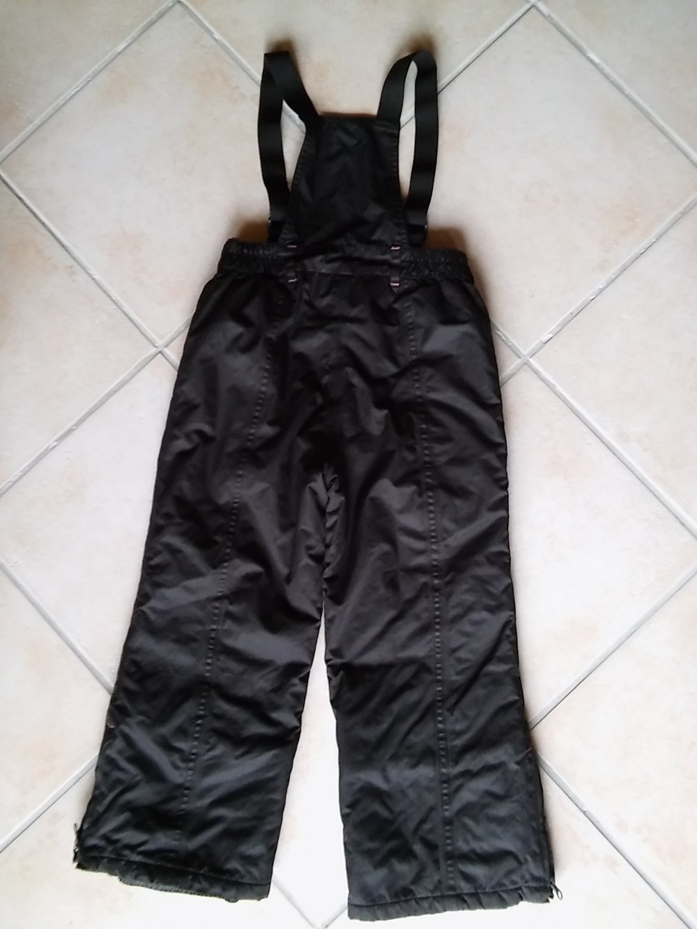 Diese Skihose hat die Größe 128 und ist von C&A. Vorn ist ein Reisverschluss und ein Druckknopf angebracht. Sie hat einen Gummibund und Gürtelschlaufen, sowie Gummihosenträger zum Einstellen.