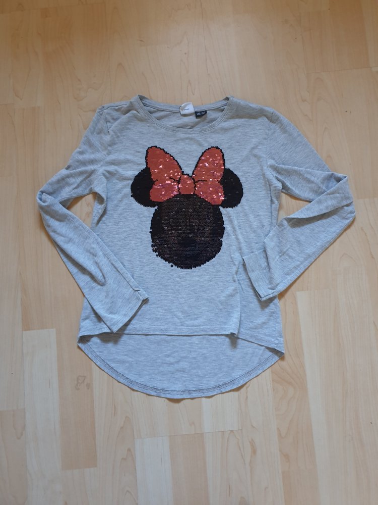Minnie Maus Pullover 146 Hoodie grau pink Pailletten