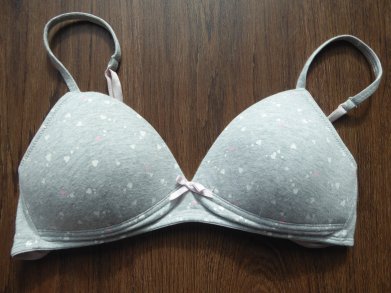 BH von Yigga Gr. 158/164 grau meliert mit rosa + weissen Herzchen BH von Yigga Gr. 158/164 grau meliert mit rosa + weissen Herzchen