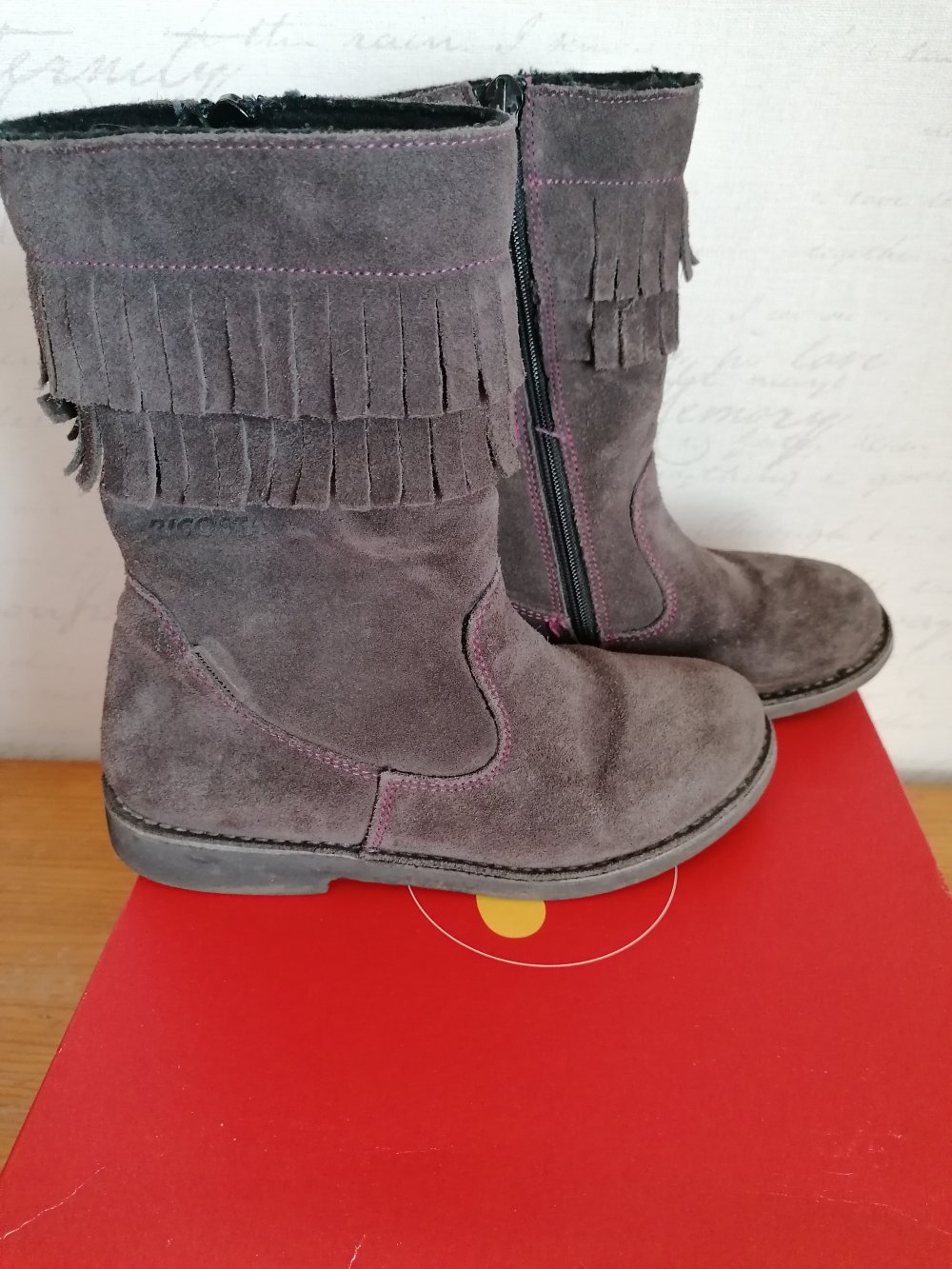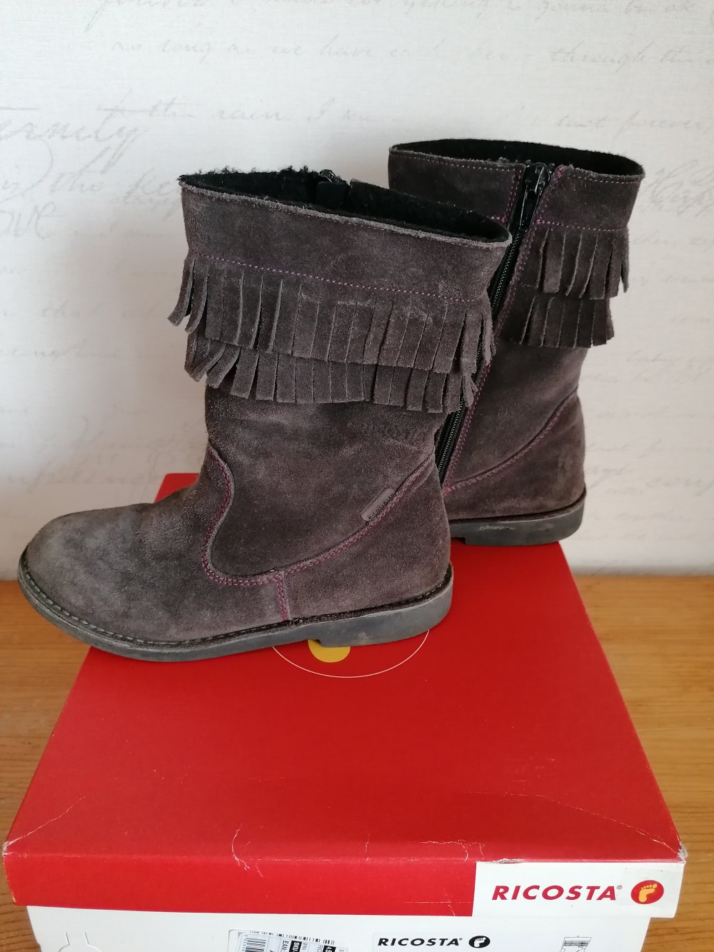 Diese tollen, halbhohen Stiefel hatte ich von meiner mittleren Tochter für die kleine Schwester aufbewahrt. Der würden sie nun aber im Sommer passen, sie steigt gerade jetzt im März auf Gr. 33 um, sodass sie aktuell noch passende Winterstiefel hat und sie im kommenden Winter sicherlich nicht mehr passen.