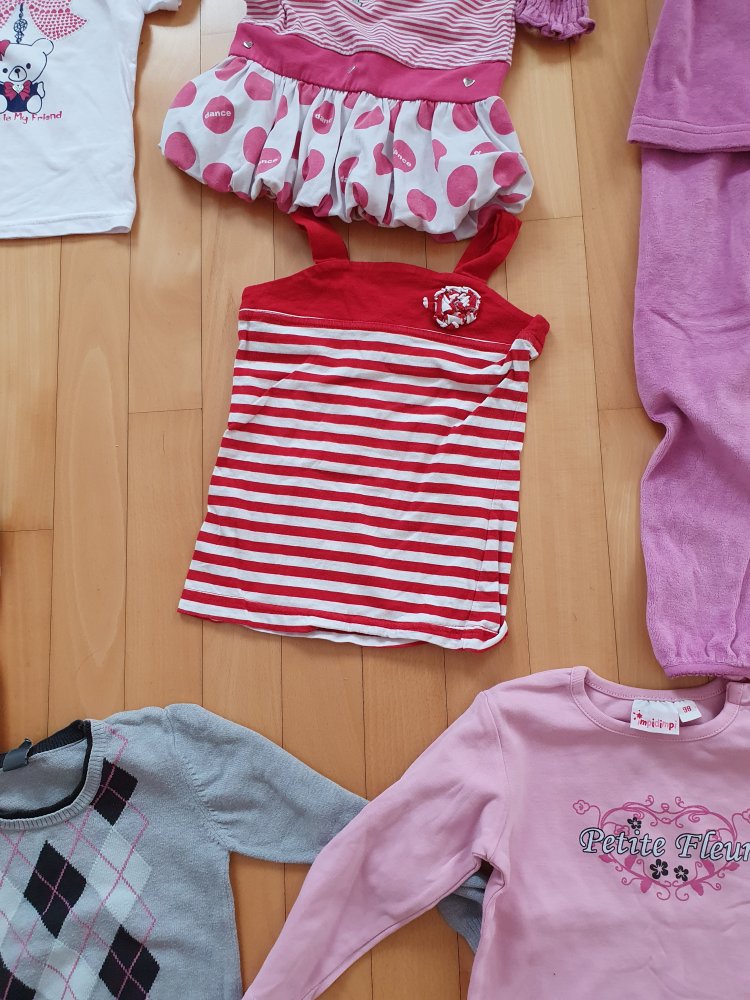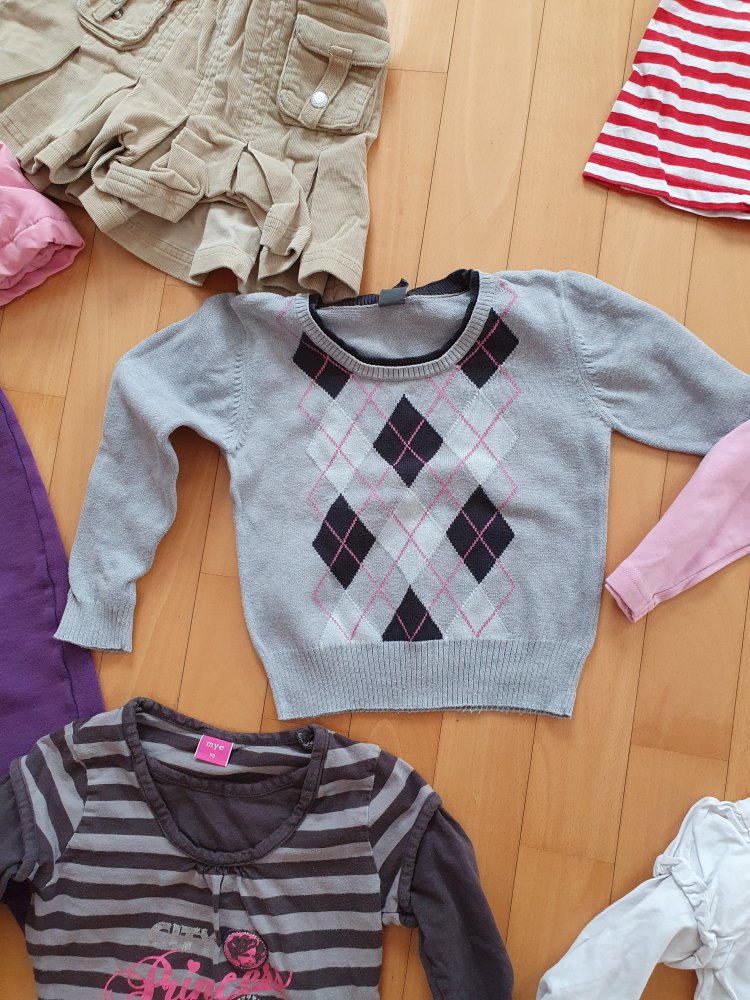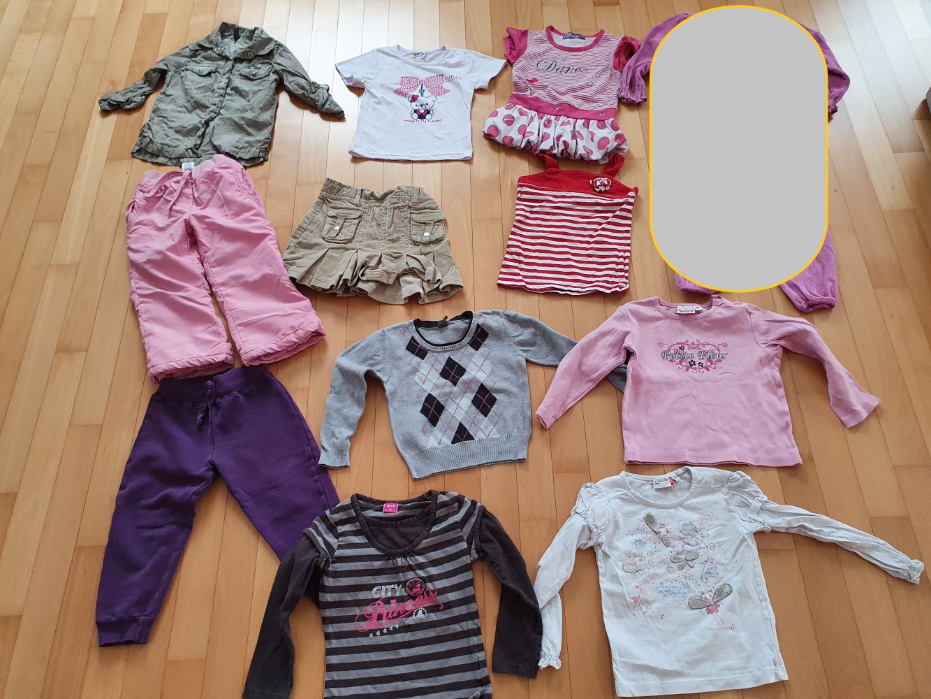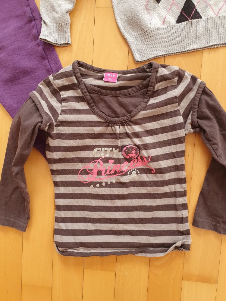Das Paket beinhaltet 11 Teile: 4 T Shirts langärmlig, 1 Tshirt kurzärmlig, 1 Top, 1 kleid, 1 Rock, 1 lange Hose, 1 lange gefütterte Hose, 1 Bluse