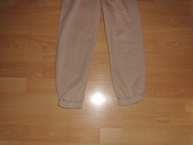 Das Oberteil hat vorn einen kurzen Reißverschluss und auf der linken Brustseite den Schriftzug: Relax. Der untere Bund und die Ärmelbündchen sind elastisch. Die Hose hat einen bequemen, breiteren elastischen Bund mit Zugband. Vorn befinden sich zwei Taschen, unter der linken befindet sich auch der weiße Schriftzug: Relax. Die Beinbündchen sind gerafft. Der Zweiteiler wurde nur selten getragen und ist sehr gut erhalten.