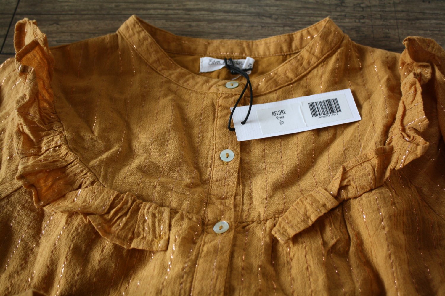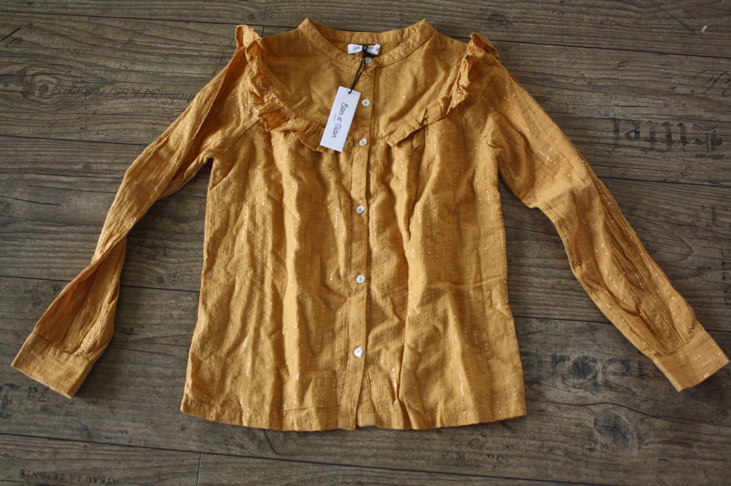 #neumitetikett #eden&victor #eden&victorbluse #goldenebluse #goldbluse #rüschenbluse #mädchenbluse #rüschen #langarmbluse