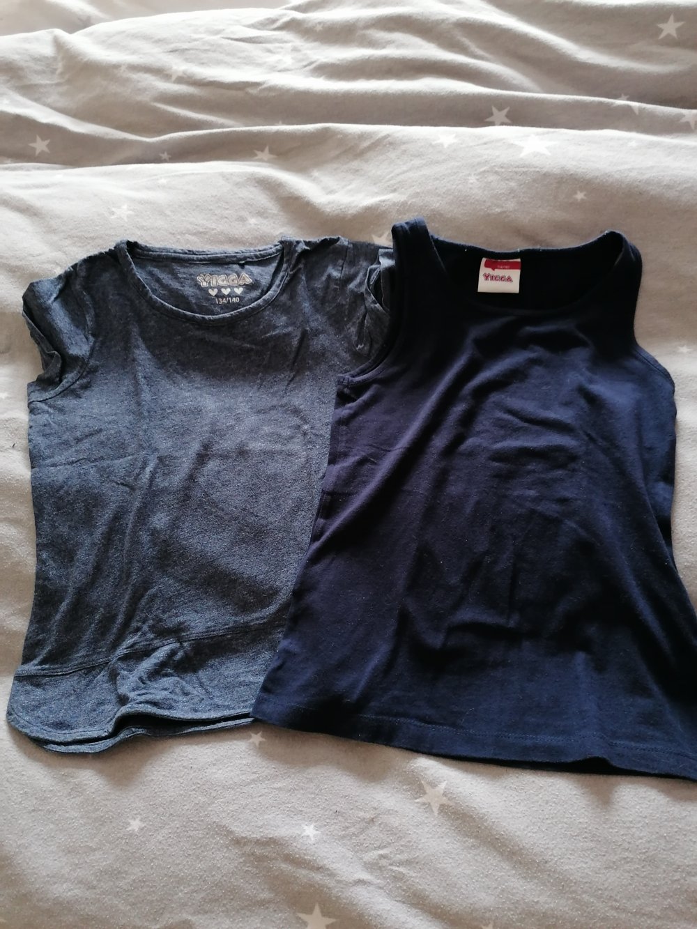 Yigga: zwei blaue Basic-Shirts Gr. 134/140