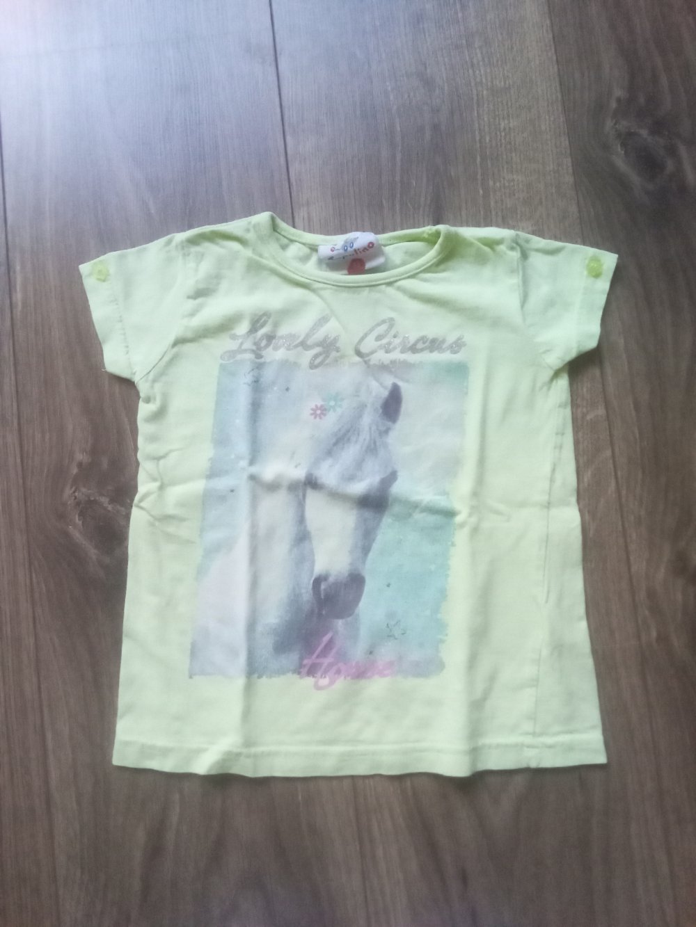 T-Shirt Pferd topolino 98 gelb grün neon 100% Baumwolle lovely circus
