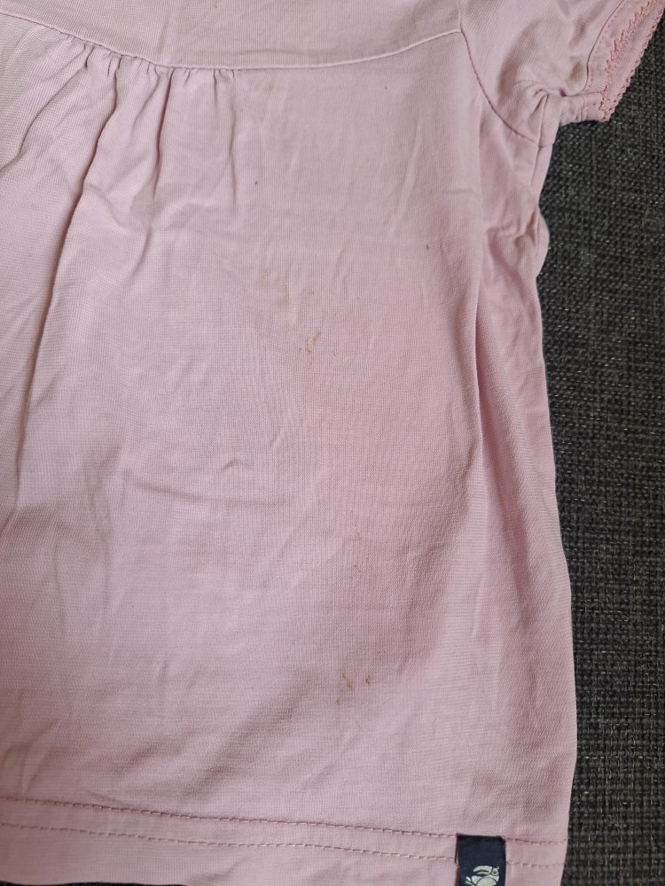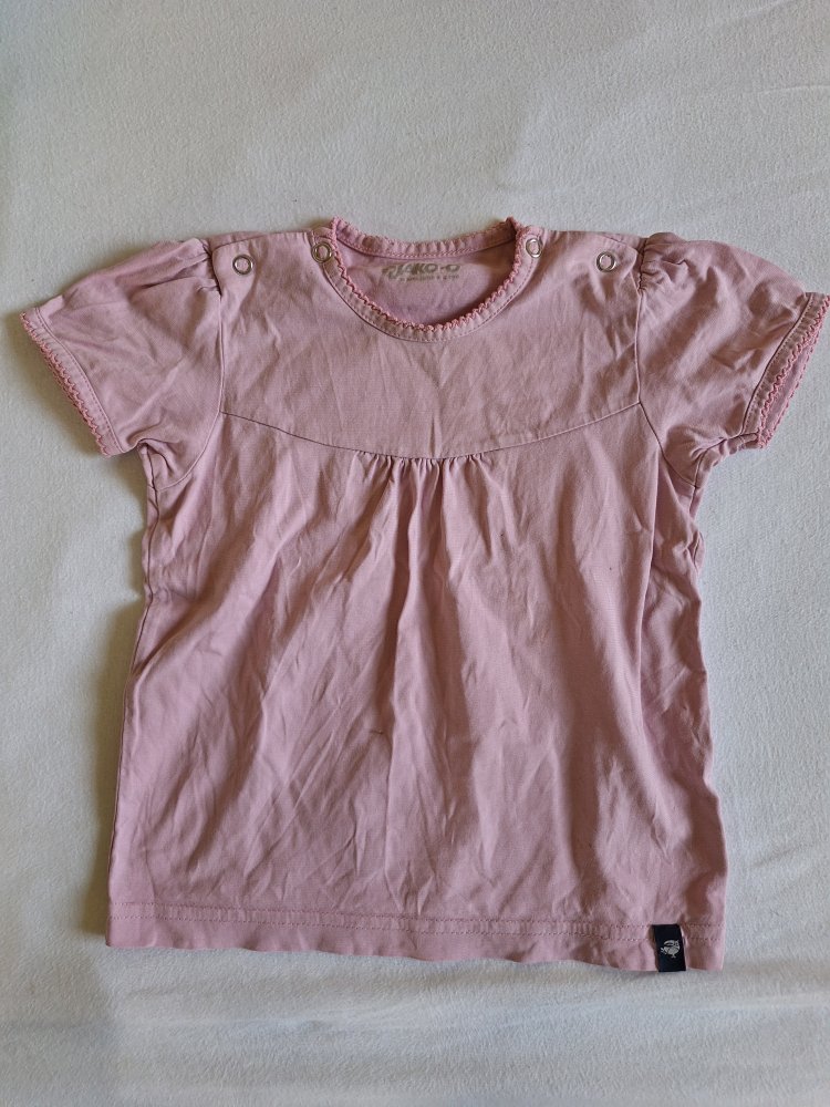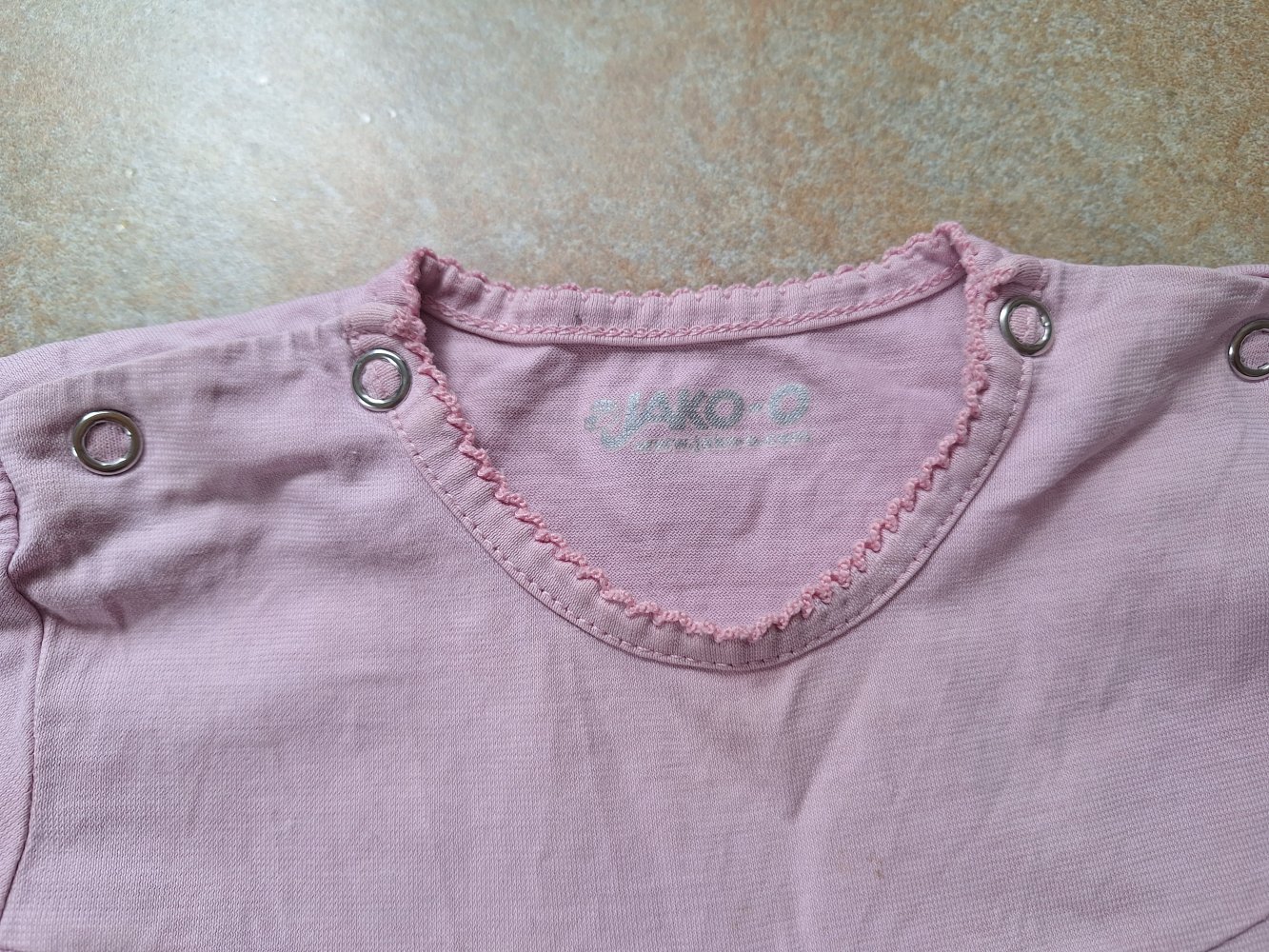 Schönes rosafarbenes T-Shirt in Gr. 80/86 aus 100 % Baumwolle. Am Halsausschnitt befinden sich auf jeder Seite zwei praktische Druckknöpfe, um das Shirt leichter über den Kopf an- und auszuziehen.