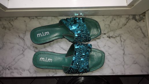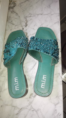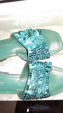Sandalen mit Pailetten, türkis