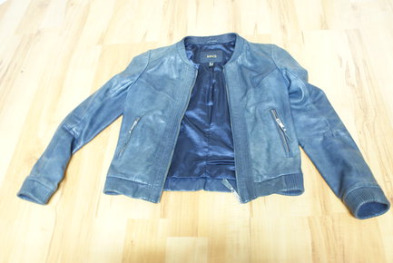 Blaue Lederjacke