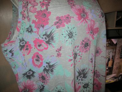 ärmelloses kleid,grau,rot,türkis,grösse 52/54,blumen,schlicht