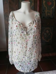 Zara Bluse Chiffon weiß Blumen geblümt Schleife M 38 Langarm