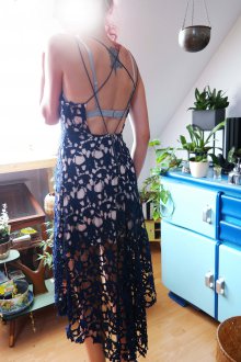 HighLow Kleid Spitzenkleid Abendkleid dunkelblau marine Spitze Blumen S M 36 38 Vokuhila