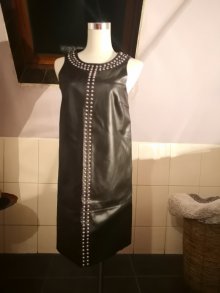 Art Leder kleid, Midikleid mit Nieten , Rundhals-Ausschnitt, gerade verlaufender Schnitt
