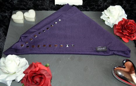 Schönes, lilafarbenes Tuch in dreieckiger Form mit silberfarbenen Kunststoffplättchen