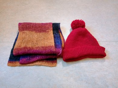 Schönes Sets: Mütze mit Schal in Lila