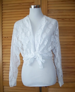 VINTAGE// Cardigan/ Bolero/ Bluse aus weißer Spitze zum Binden Gr. 36-40