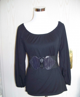 VINTAGE// Weite schwarze 70er-Bluse (langärmlig) von *Trevira*