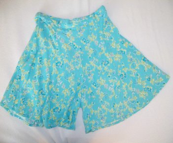 VINTAGE// Weiter Hosenrock gemustert mit Blumen gecrinkelt plissiert high-waist