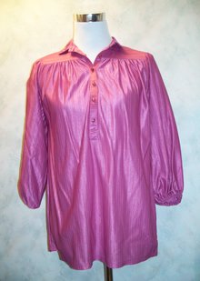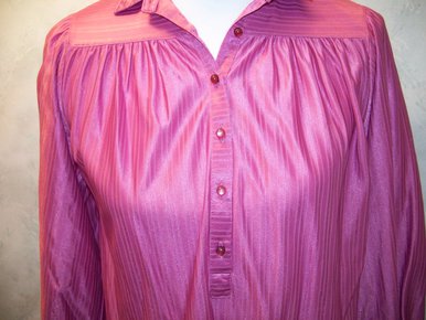 VINTAGE// Pinke Bluse gerade & leicht schillernd mit 3/4-Arm