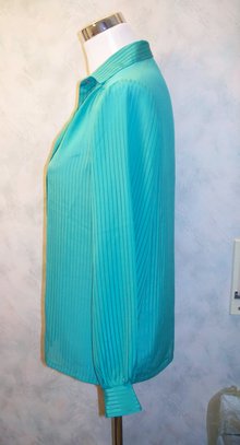 VINTAGE// Grüne langärmlige Bluse leicht transparent und gerade