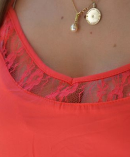H&M Chiffon Basic Top mit Spitze rot XS S oversized NEU Spaghettiträger