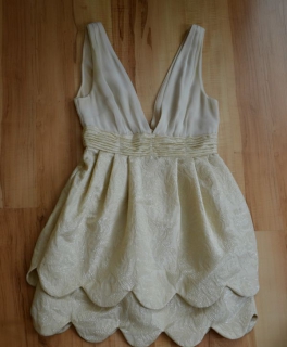 H&M Conscious Collection Kleid Abendkleid mit tiefem Ausschnitt Chiffon Brokat Dress nude 34 XS
