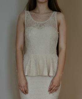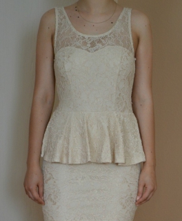 Wunderschönes nude creme Spitzen Peplum Kleid enganliegend Blogger 34 XS wie neu
