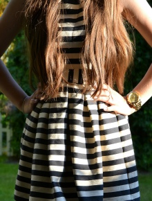 Beliebtes Asos Petit Ballon Kleid Streifen nude beige schwarz gestreift Cut Out Rücke 34 XS NEU