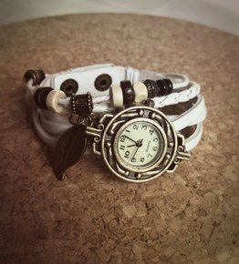 Uhr Romantik Vintage weiß Armband Anhänger Gothic Ethno Goa
