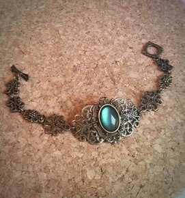 Ethno Kette grün türkis Stein Schimmer bronze vintage gothic Look steampunk goa