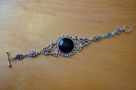 Gothic Armband silberfareben schwarz Ornament Emo Rockabilly Jugendstil