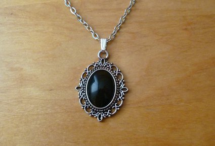 Kette schwarz antik silber farben Ornament Jugendstil vintage look Gothic