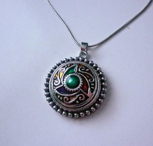 Medaillon Kette Amulett Ornament Vintage grün Ethno Goa Steampunk Gothic