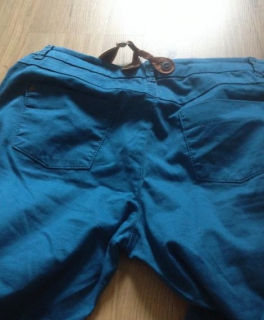 Blaue Hose mit Hosenträgern