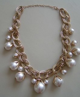 Elegante große Statement Blogger Perlen Kette Perlenkette Collier Gold