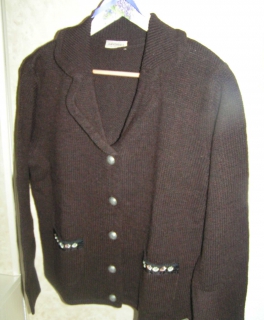 Landhaus Woll Strickjacke Jacke Trachten Gr. L 44/46 dunkelbraun Neu UVP 59,90€