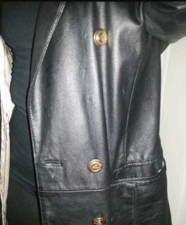 Vintage schwarzer Echtleder Blazer/halblanger Ledermantel mit goldfarbenen Knöpfen Gr. 38/S