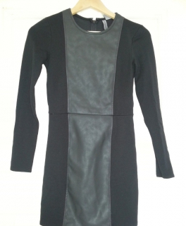 H&M schwarzes Minikleid mit langen Ärmeln und Kunstledereinsatz Gr. xs