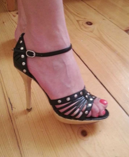 Graceland/Deichmann schwarze Riemchen Highheels mit Nieten und Fesselriemchen aus Kunstleder Gr. 36