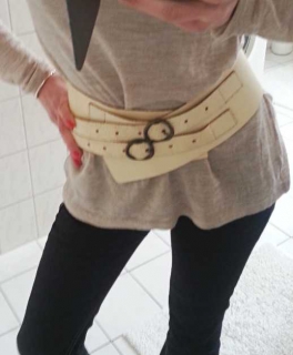 Cremefarbener breiter Vintage Taillen-/ Hüftgürtel mit 2 kleinen Schnallen
