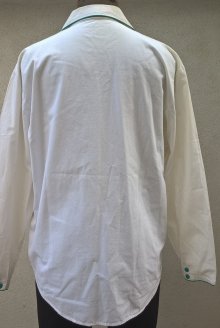 BLUSE Gr.36 IN WEISS LANGARM mit STICKEREI FLUGZEUG 70er TRUE VINTAGE