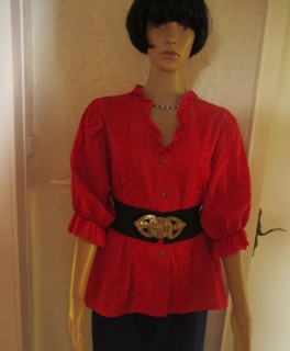NEUw Romantik Batist Loch- Stickerei Original Vintage Designer Dirndl Oktoberfest Trachten Bluse Gr. 42- 44/ M- L rot